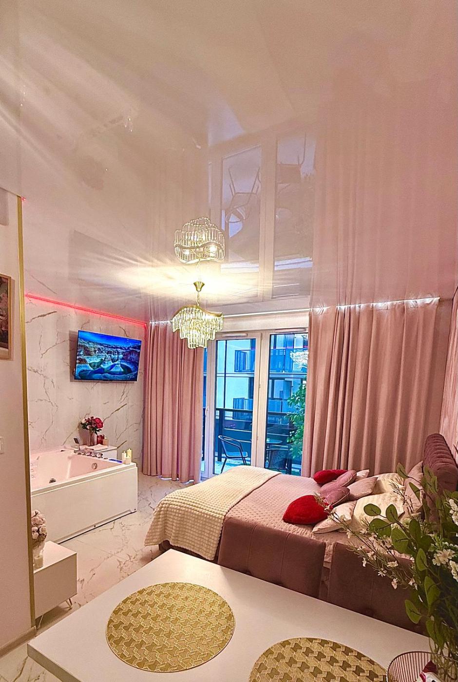 Apartament z 1 sypialnią. Guests will have a special experience as this apartment provides a hot tub and a spa bath. This apartment consists of 1 bedroom, a kitchen and 1 bathroom with a shower and a hairdryer. Guests can make meals in the kitchen that is equipped with a stovetop, a refrigerator, kitchenware and a microwave. This apartment features a washing machine, a dining area, flat-screen TV, as well as winechampagne for guests. The unit offers 1 bed. Apartament - 2 osobowy. Powierzchnia pokoju ok.: 27 mkw.