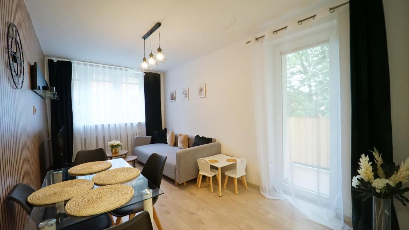 Apartament Rodzinny z 1 sypialnią. This apartment includes 1 living room, 1 separate bedroom and 1 bathroom with a shower. In the well-equipped kitchenette, guests will find a stovetop, a refrigerator, a dishwasher and kitchenware. The apartment offers a washing machine, an electric kettle, heating, as well as a TV. The unit has 3 beds. Apartament - 4 osobowy. Powierzchnia pokoju ok.: 35 mkw.