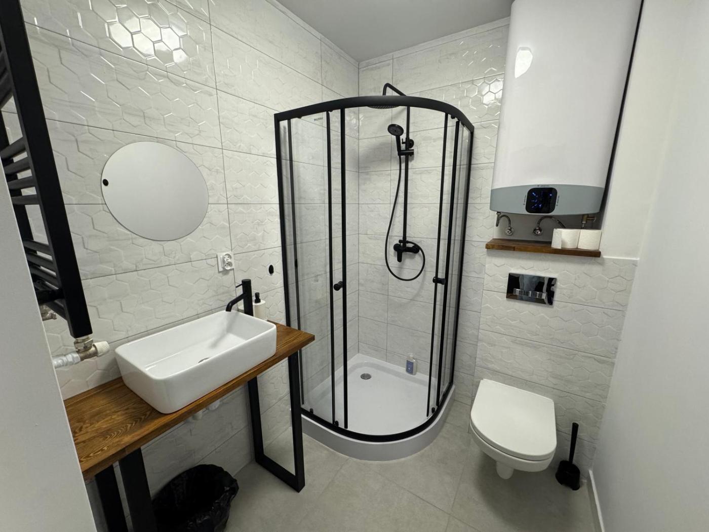 W apartamencie znajduje się w pełni wyposażony aneks kuchenny, który umożliwia przygotowanie posiłków w dogodnych warunkach 🍳. Dodatkowo, w każdym pokoju goście mają do dyspozycji prywatną łazienkę, co zapewnia prywatność i komfort 🛁.