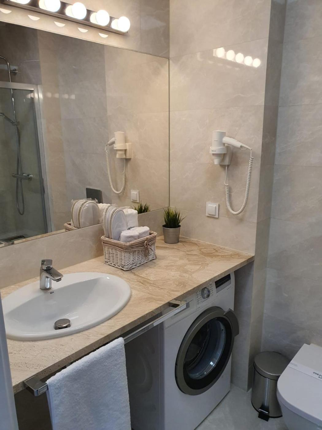Apartament z tarasem. This apartment comprises 1 living room, 1 separate bedroom and 1 bathroom with a walk-in shower and free toiletries. The well-equipped kitchenette features a stovetop, a refrigerator, a dishwasher and kitchenware. Featuring a terrace, this apartment also provides a washing machine, a tea and coffee maker and a flat-screen TV with streaming services. The unit offers 2 beds. Apartament - 4 osobowy. Powierzchnia pokoju ok.: 38 mkw.