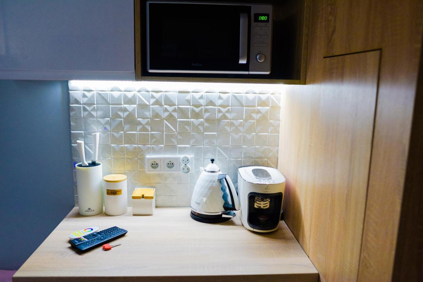 Apartament z 1 sypialnią. This luxurious apartment features a hot tub, a spa bath and a sauna. The apartments kitchenette, which has a refrigerator and a microwave, is available for cooking and storing food. The air-conditioned apartment provides a flat-screen TV with satellite channels, a washing machine, a tea and coffee maker and heating. The unit offers 1 bed. Apartament - 2 osobowy. Powierzchnia pokoju ok.: 20 mkw.