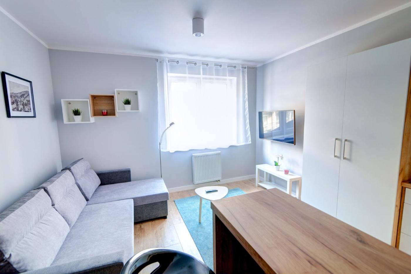 Apartament typu studio. In the well-equipped kitchen, guests will find a stovetop, a refrigerator, kitchenware and a microwave. This apartment is comprised of a flat-screen TV with streaming services and a private bathroom. The unit has 1 bed. Apartament - 3 osobowy. Powierzchnia pokoju ok.: 21 mkw.