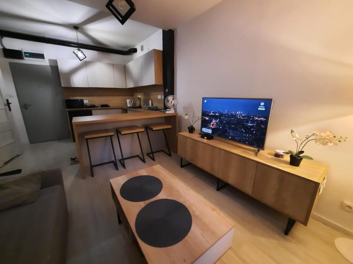 Apartament z 1 sypialnią. The sauna is the standout feature of this apartment. This apartment comes with 1 living room, 1 separate bedroom and 1 bathroom with a walk-in shower and a hairdryer. Guests will find a stovetop, a refrigerator, kitchenware and a microwave in the kitchenette. The apartment also includes a barbecue. The apartment features soundproof walls, a tea and coffee maker, executive lounge access, a flat-screen TV, as well as river views. The unit has 2 beds. Apartament - 4 osobowy. Powierzchnia pokoju ok.: 32 mkw.