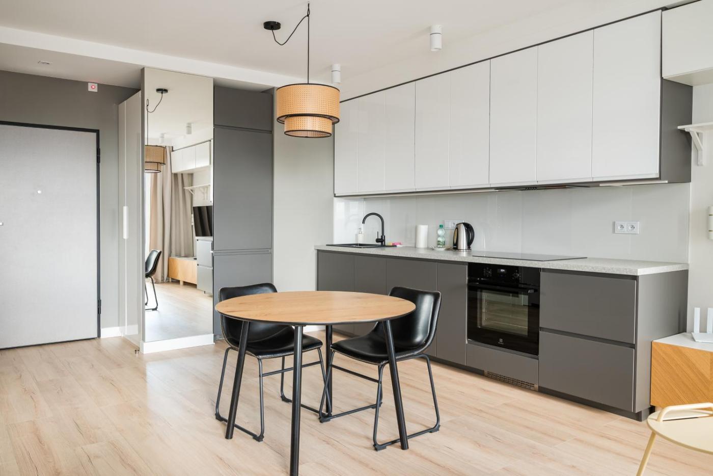 Studio typu Deluxe z łóżkiem typu king-size. The fully equipped kitchenette features a stovetop, a refrigerator, a dishwasher and kitchenware. The studio provides a washing machine, a private entrance, a balcony with city views as well as a private bathroom featuring a shower. The unit offers 1 bed. Studio - 2 osobowy. Powierzchnia pokoju ok.: 32 mkw.