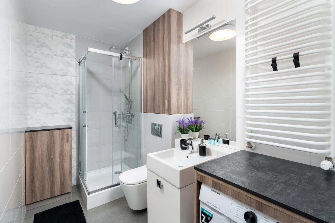 Apartament z 1 sypialnią. This apartment comes with 1 living room, 1 separate bedroom and 1 bathroom with a shower and a hairdryer. Guests can make meals in the kitchenette that features a stovetop, a refrigerator, a dishwasher and kitchenware. This apartment has a washing machine, flat-screen TV, city views, as well as chocolate for guests. The unit has 2 beds. Apartament - 4 osobowy. Powierzchnia pokoju ok.: 37 mkw.
