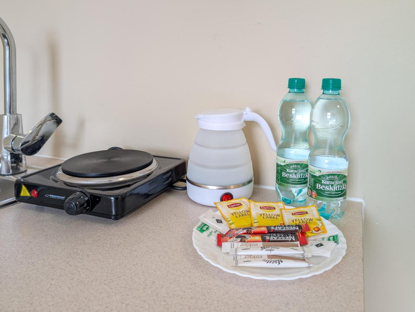 Apartament dwuosobowy typu Studio Deluxe. The studio features a private entrance, a tea and coffee maker, as well as a private bathroom boasting a shower and a hairdryer. The kitchenette has a stovetop, a refrigerator and kitchenware. A dining area, a wardrobe and heating are offered in this studio. The unit has 2 beds. Studio - 2 osobowy. Powierzchnia pokoju ok.: 20 mkw. ;
